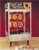Your pretzels are a real hot item with these attractive merchandisers. Two- or three-tiered racks hold dozens of fresh, toasty pretzels that look absolutely tempting under the infrared overhead lights. For added appeal, merchandisers feature contemporary food prep equipment|Revolving Pretzel Warmer - 27 1/8'| nemco| nemco Revolving Pretzel Warmer - 6403| New nemco Revolving Pretzel Warmer - white finish| New nemco Revolving Pretzel Warmer - white finishBy nemco| nemco - Pretzel Warmer - #6403| nemco RevolImages ScreenShot